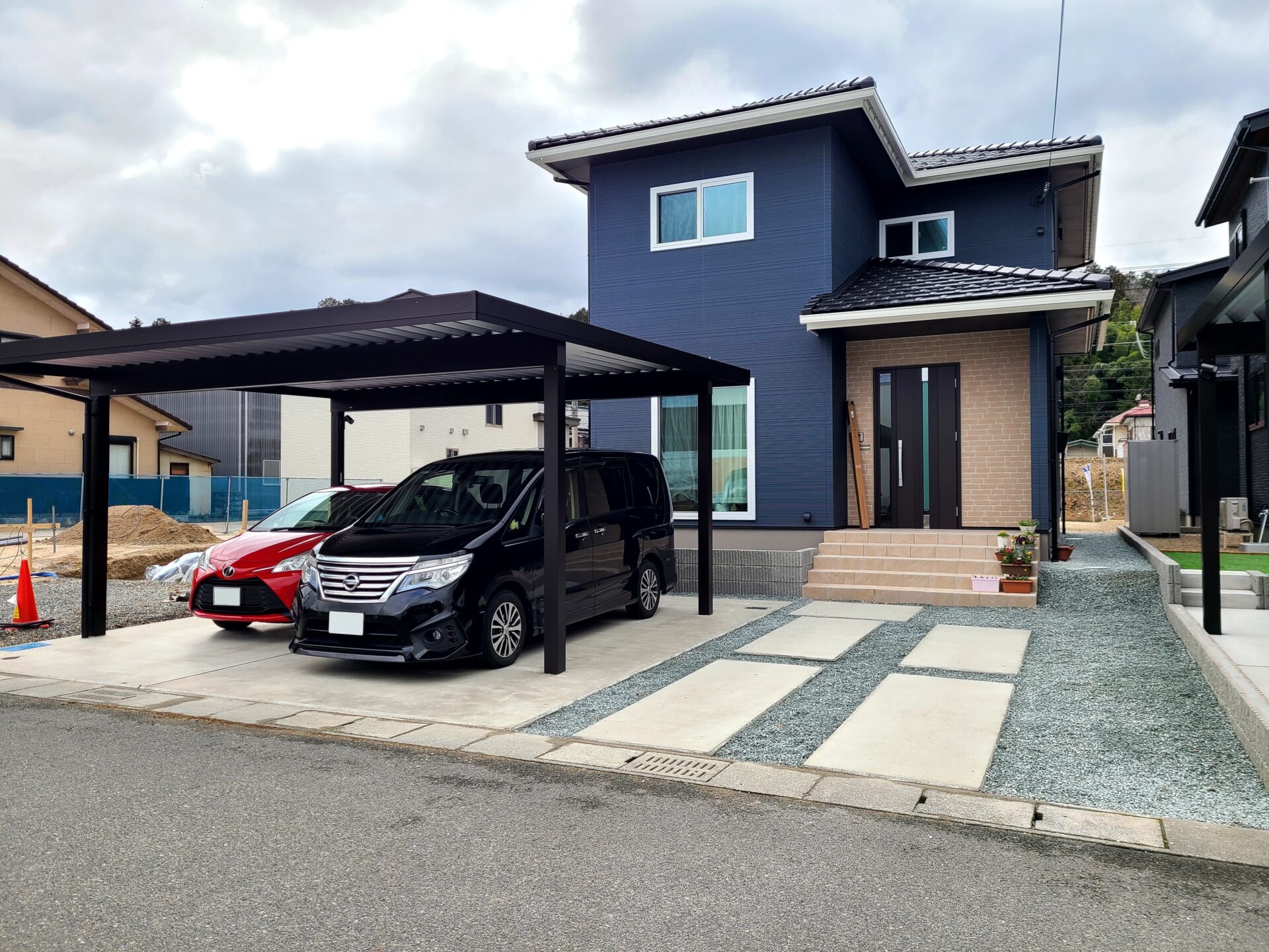 アプローチは駐車場スペースとしても兼用できるように、動線を意識した形となりました。