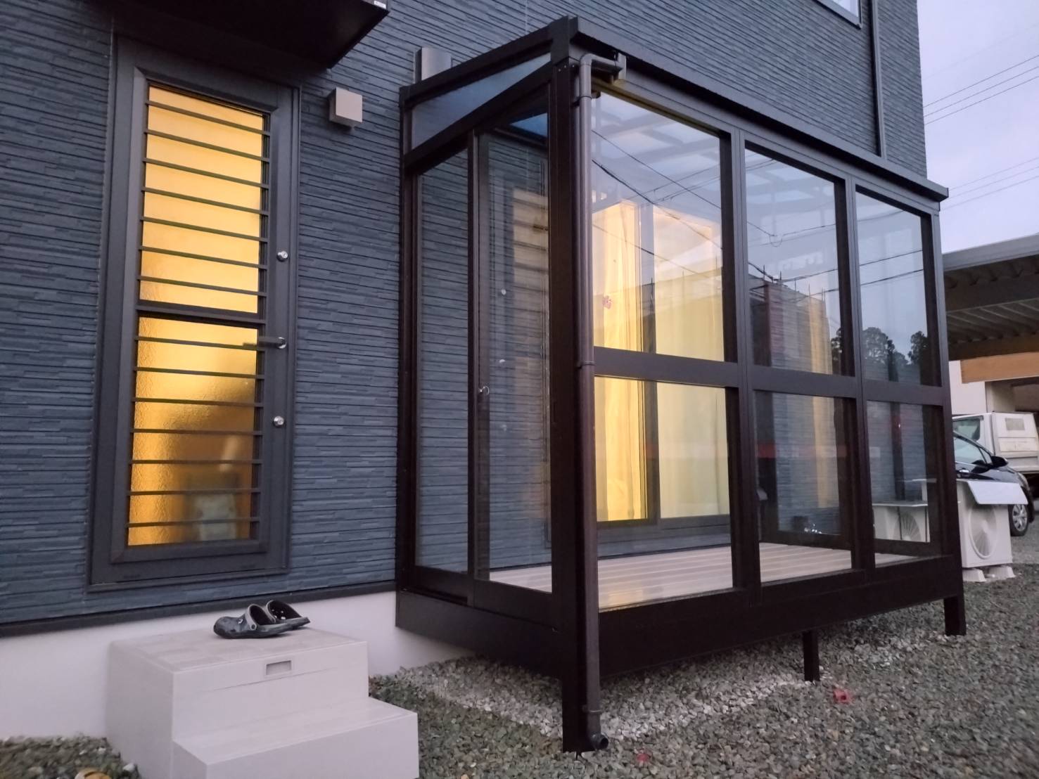 サンルームを設けることで、ちょっとした作業スペースや、くつろぎの時間を楽しめる快適な外構に仕上がりました。